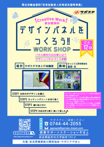 12月にデザインパネル製作体験をしますので是非興味がある方はサポートステーションやまとまでお問合せ☎ください。